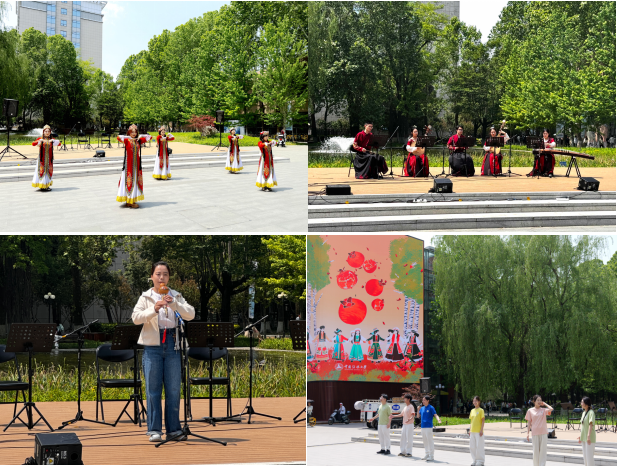音樂與錄音藝術學院、傳播研究院、文化產業管理學院、信息與通信工程學院、外國語言文化學院的同學們以精湛的技藝和飽滿的熱情,呈現了一場融合多元民族文化的視聽盛宴。男女重唱《春天》朝氣蓬勃、民族樂五重奏《敦煌》古韻悠長、新疆舞蹈《酒歌翩躚?石榴花開》歡天喜地、葫蘆絲獨奏《月光下的鳳尾竹》清幽空靈、維吾爾族舞蹈《歡樂的跳吧》活力四射、古典舞《大唐盛世》氣勢恢宏,各類節目輪番上演,展現了民族團結的情感與文化交融的魅力。