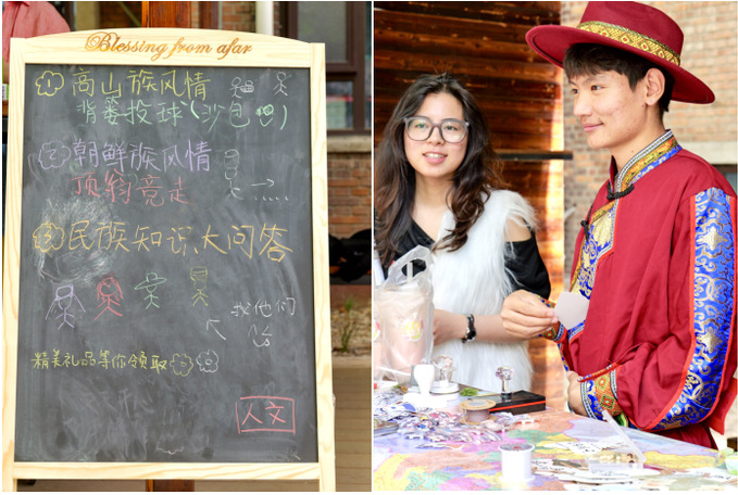 市集還設置了多個互動游戲攤位,在“山海同心”民俗挑戰營中挑戰高山族背簍投球;沉浸式體驗朝鮮族頂甕行走;在“版圖探秘·民族智慧堂”中感受趣味貼貼樂和知識擂臺賽。通過這些充滿民族特色的游戲,同學們更加深入地了解各民族文化,在潤物無聲中增進中華文化認同。