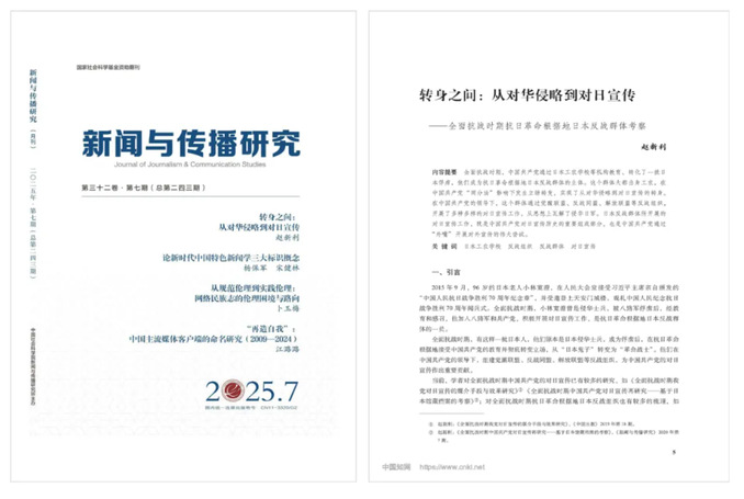 ▲ 2025年第7期《新聞與傳播研究》封面與論文