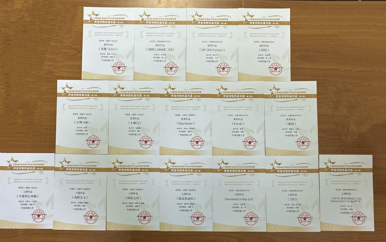 本年度音樂、影視類選送的16部作品全部獲獎,在聲音學院作品交流活動中獲得“全滿貫”。100%的獲獎率不僅刷新了此前的記錄,更創造了近年來的最佳戰績,充分體現了學院在人才培養和作品選送上的高水平與絕對實力。