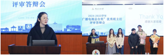 校黨委統(tǒng)戰(zhàn)部部長、學生工作部(處)部(處)長郭婧娜,紀委辦公室(監(jiān)察處)、黨委宣傳部、黨委教師工作部、本科生院、研究生院、中傳學院、后勤保障處等職能部門領導參加答辯會,各學院黨委副書記、專職輔導員、班主任代表到場觀摩。評審答辯會由2025年“2+2”思政輔導員專項計劃入選成員裴朗茜主持。
