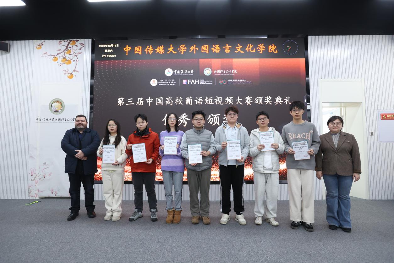 (通訊員 李昱 劉馨憶 顏巧容 攝影 林曦 宗泱泱)12月13日,第三屆中國高校葡語短視頻大賽頒獎典禮暨“科創新‘視’界·青年傳新聲”主題交流會在中國傳媒大學外國語言文化學院舉行。本屆大賽以“科創中國”為主題,共收到來自內地及澳門29所高校的64部參賽作品,經評選產生15部獲獎作品。活動為青年學子與業界專家搭建了對話平臺,共同探索面向葡語國家的有效傳播路徑。