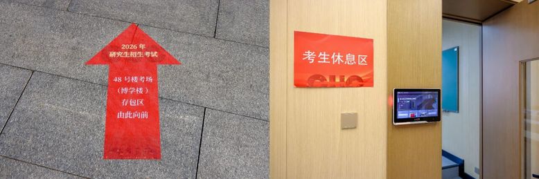 為了方便考生參加考試,招生處通過中傳研招網、中傳研招微信公眾號等多渠道,提前向考生發布了《中國傳媒大學考點考生須知》、存包服務指南與安檢注意事項等。考試期間,校園內張貼了路線指引標識,幫助考生提前了解考場分布及考區情況。考場立德樓一層設置了考生休息區,學校食堂提供了多種餐飲選擇,為考生提供免費熱水。校醫院工作人員全程保障。